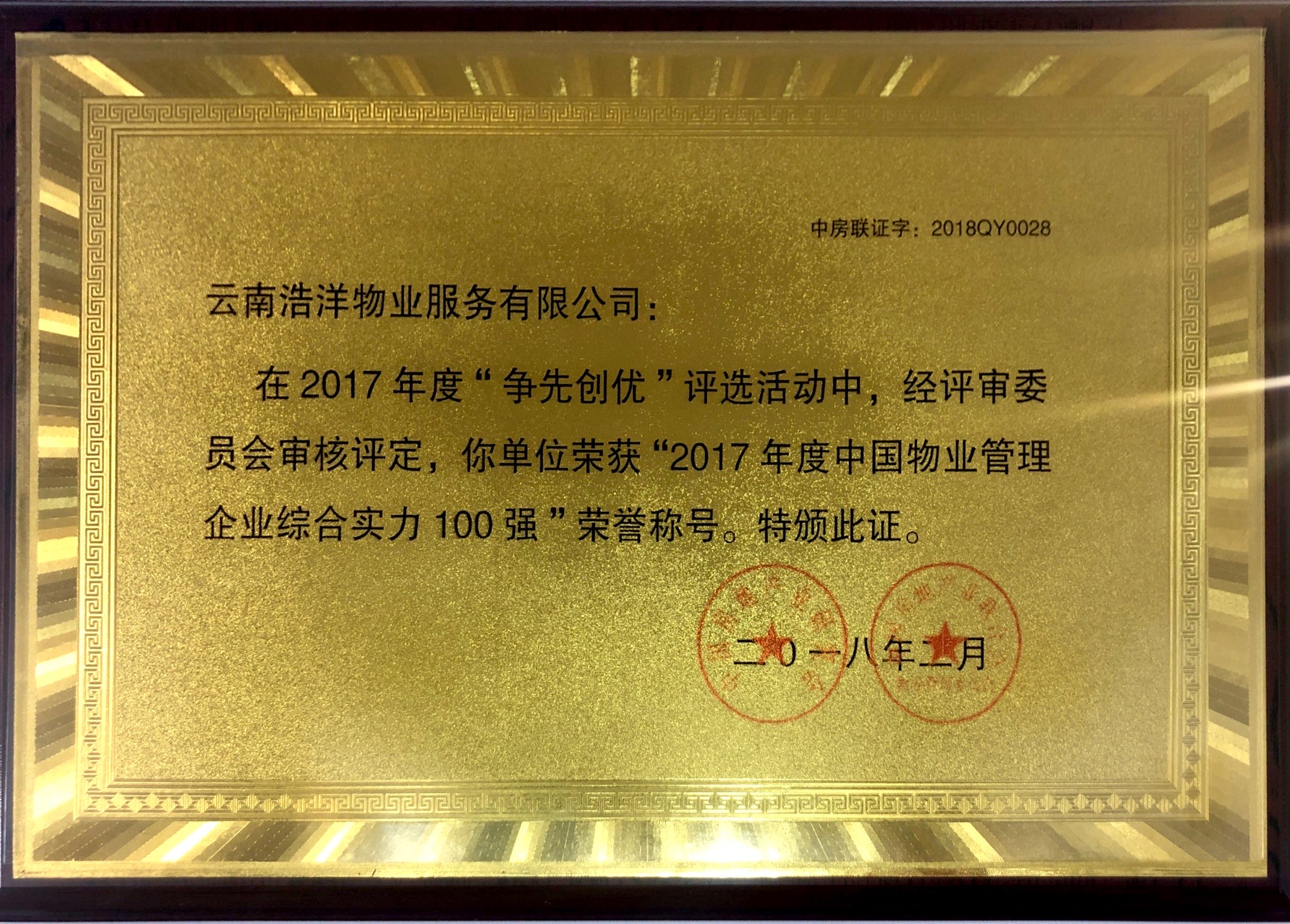 2017年度全國十佳優(yōu)秀物業(yè)服務(wù)企業(yè)