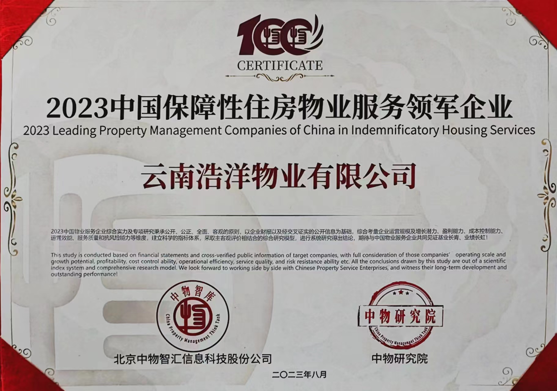 2023中國保障性住房物業(yè)服務(wù)領(lǐng)軍企業(yè)